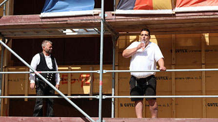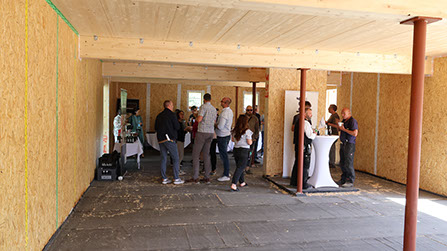 Gute Fortschritte macht der Neubau des CLIPPO Boberg. Hier setzen die Zimmerleute bereits die Dachsparren.