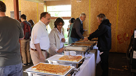 Am Sonntag, dem 6. Oktober fand der diesjährige Open Air Gottesdienst zum Erntedankfest statt. Da die Wiese hinter dem Bürgerhaus aufgrund der Baustelle für das Clippo Boberg noch nicht wieder zur Verfügung stand, wurde erneut die Terrasse auf der Rückseite vom Bürgerhaus hergerichtet. Die Heimwerker des Dorfanger Boberg e.V. unterstützten dabei, indem sie einen Tisch für den Altar und Bänke für die Besucher aufstellten.