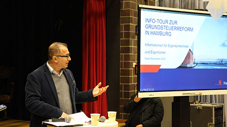 Es war eine sehr gute, interaktive Veranstaltung, bei der alle Fragen der Anwesenden beantwortet wurden. Für alle, die nicht dabei waren, hier die Links zur PowerPoint-Präsentation, zur Seite Grundsteuer Hamburg und zum Wohnlagenverzeichnis Hamburg