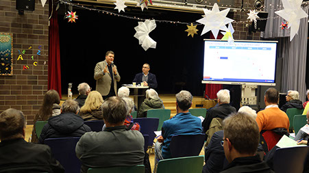 Ob es am Montag lag oder an der Vorweihnachtszeit, leider waren bei diesem hochinteressanten Thema nur gut 30 Nachbarinnen und Nachbarn erschienen. Moderiert von Ali Simsek, der das Thema auch einleitete, wurde es ein sehr informativer Abend. Dr. Dressel erklärte genauestens, wie sich die neue Grundsteuer errechnet und zeigte dies auch an Beispielen auf. Auch auf im Vorfeld häufig gemachte Fehler von Grundstückseigentümern machte er aufmerksam. So wurde die Wohnfläche vielfach zu groß angegeben, da Schuppen, Garagen oder Kellerräume mit dazu genommen wurden. Dies ist aber nicht so schlimm, dies kann man immer noch über das Elster-Portal korrigieren. Die neue Grundsteuer wird 2025 erst im April eingezogen, daher ist wichtig, dass, sofern es kein SEPA-Mandat gibt, Daueraufträge oder Überweisungen für diese Steuer im Februar nicht ausgeführt werden, sonst kann es zu doppelter Belastung oder komplizierten Umbuchungen führen.