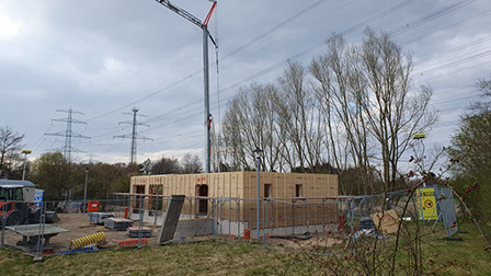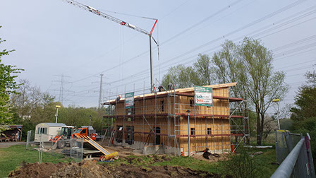 Gute Fortschritte macht der Neubau des CLIPPO Boberg. Hier setzen die Zimmerleute bereits die Dachsparren.