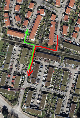 Die Zufahrt zu den Straßen Auf dem Langstücken und Bockhorster Höhe ist in dieser Zeit nur vom Reinbeker Redder her über die Straße Boberger Drift möglich. Hierzu werden die vorhandenen Feuerwehrzufahrten genutzt. In das Wohngebiet kommt man über den Boberger Drift, vorbei an dem Haus mit den Eigentumswohnungen, den kleinen Berg hinunter, links und gleich wieder rechts in die Straße Auf dem Langstücken. Aus dem Wohngebiet heraus geht es von der Bockhorster Höhe, an der großen Eiche vorbei, rechts und dann wieder links in den Boberger Drift (siehe Karte unten).